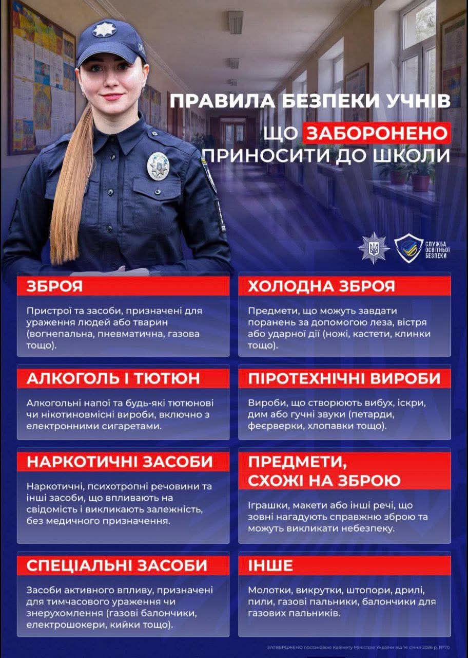Учнів також просять дотримуватися всіх вказівок педагогів та, у разі потреби, на прохання дорослих, допомогти іншим дітям евакуюватися. При прибутті до безпечної зони, не розходитися і залишатися разом із класом.